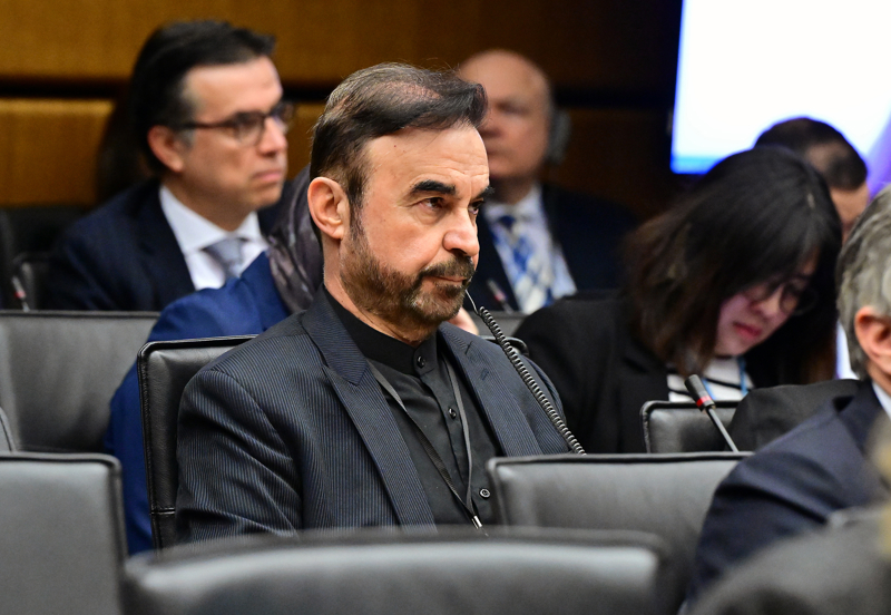 伊朗驻国际原子能机构代表礼萨·纳杰菲出席国际原子能机构理事会特别会议。\n 新华社发(国际原子能机构供图)