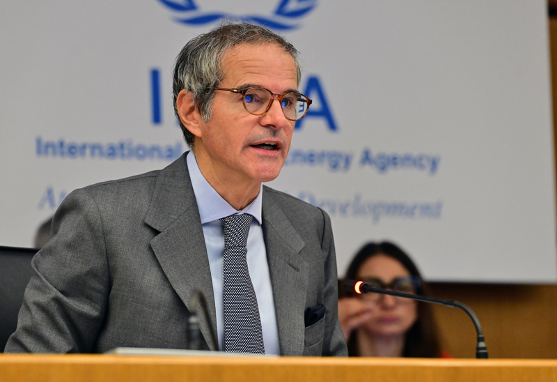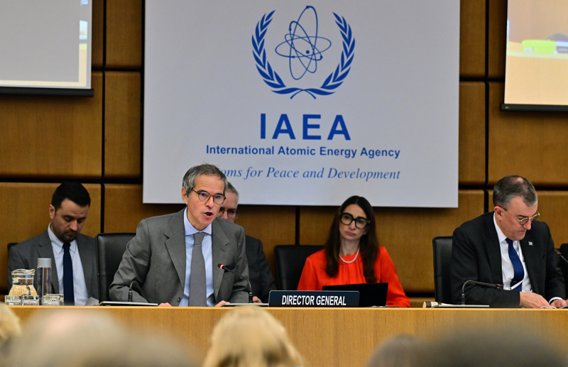 国际原子能机构总干事格罗西在国际原子能机构理事会特别会议上讲话。\n 新华社发(国际原子能机构供图)
